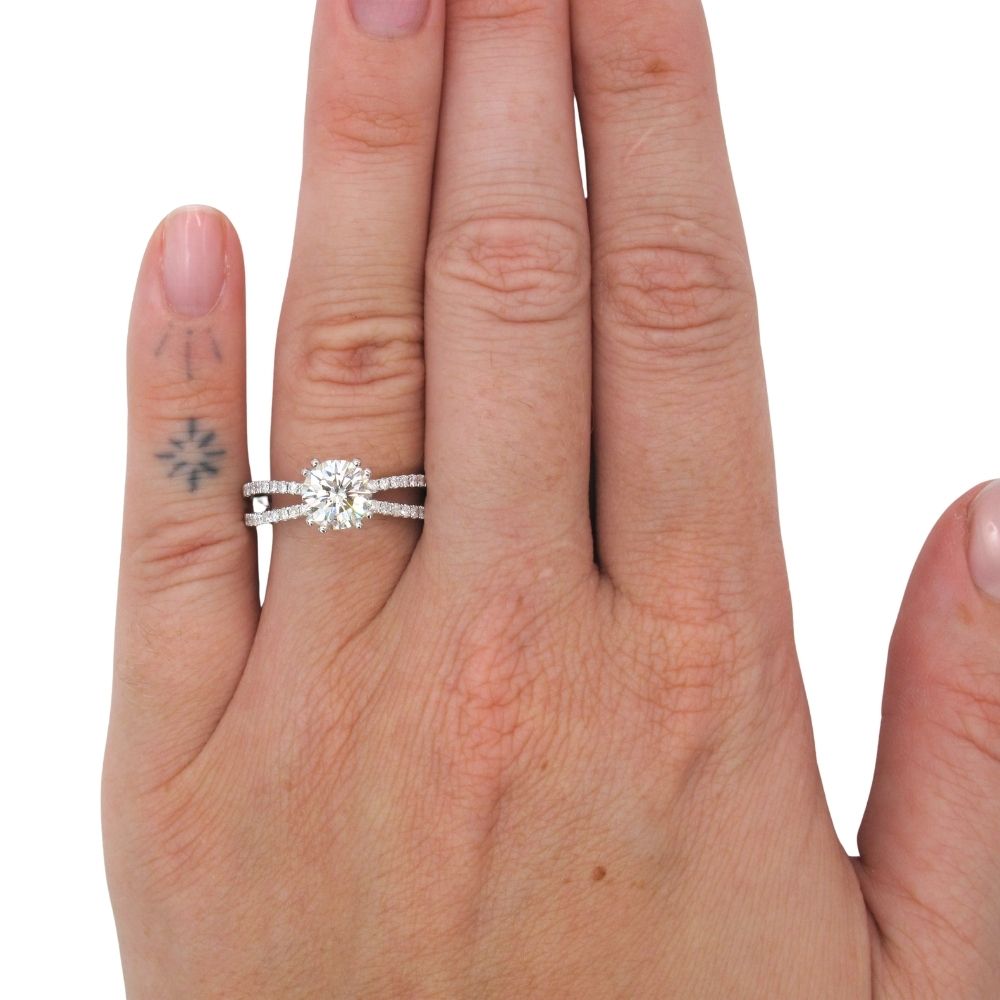 2.27ctw Round Diamond Engagement Ring with Diamond Split band & Wedding Bands Set