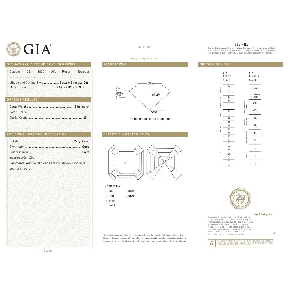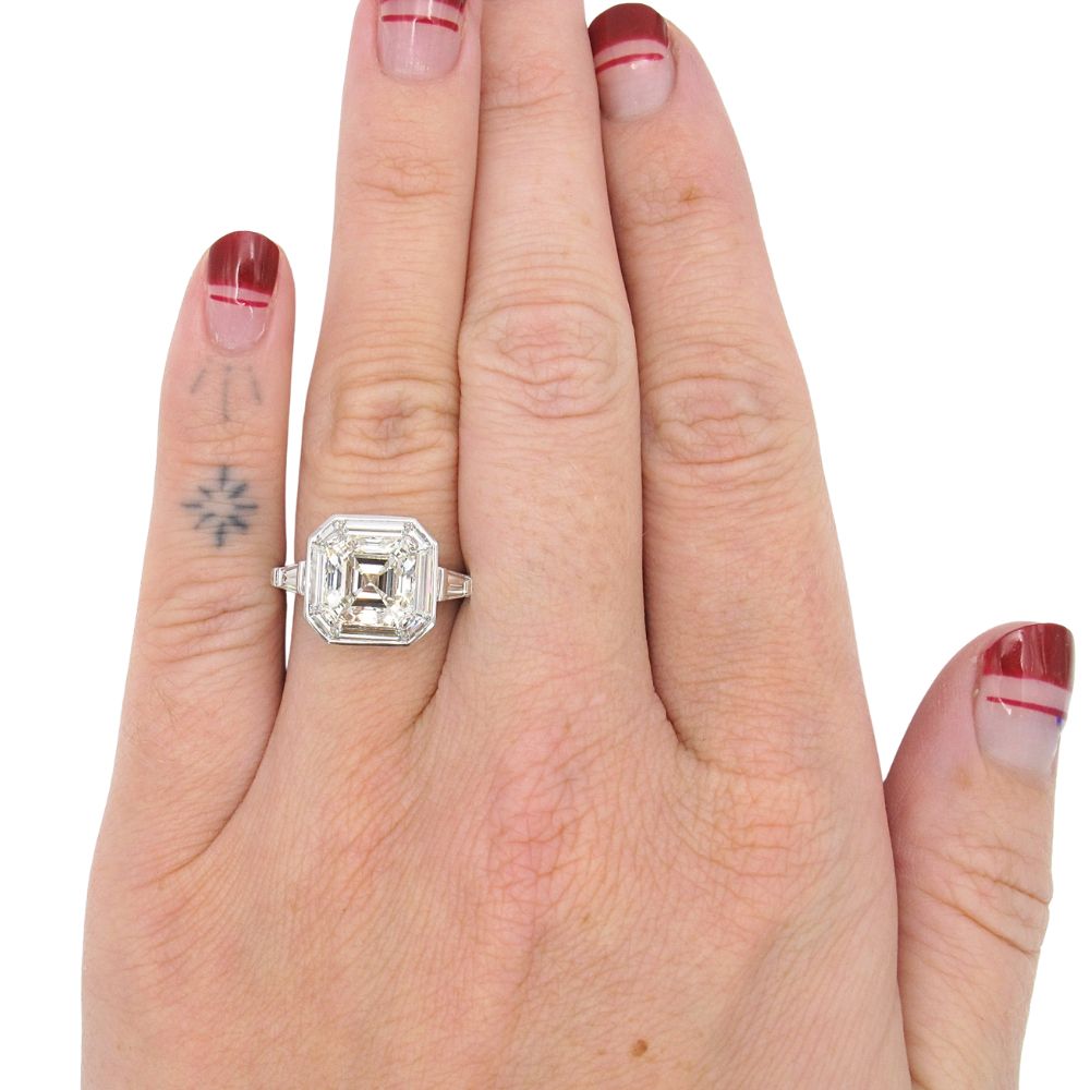 DIAMOND: 1) 3.06ct Asscher Cut Diamond GIA – certified J-Color/ SI1-Clarity (9) 1.42ctw Baguette Diamonds G-Color/VS-Clarity
