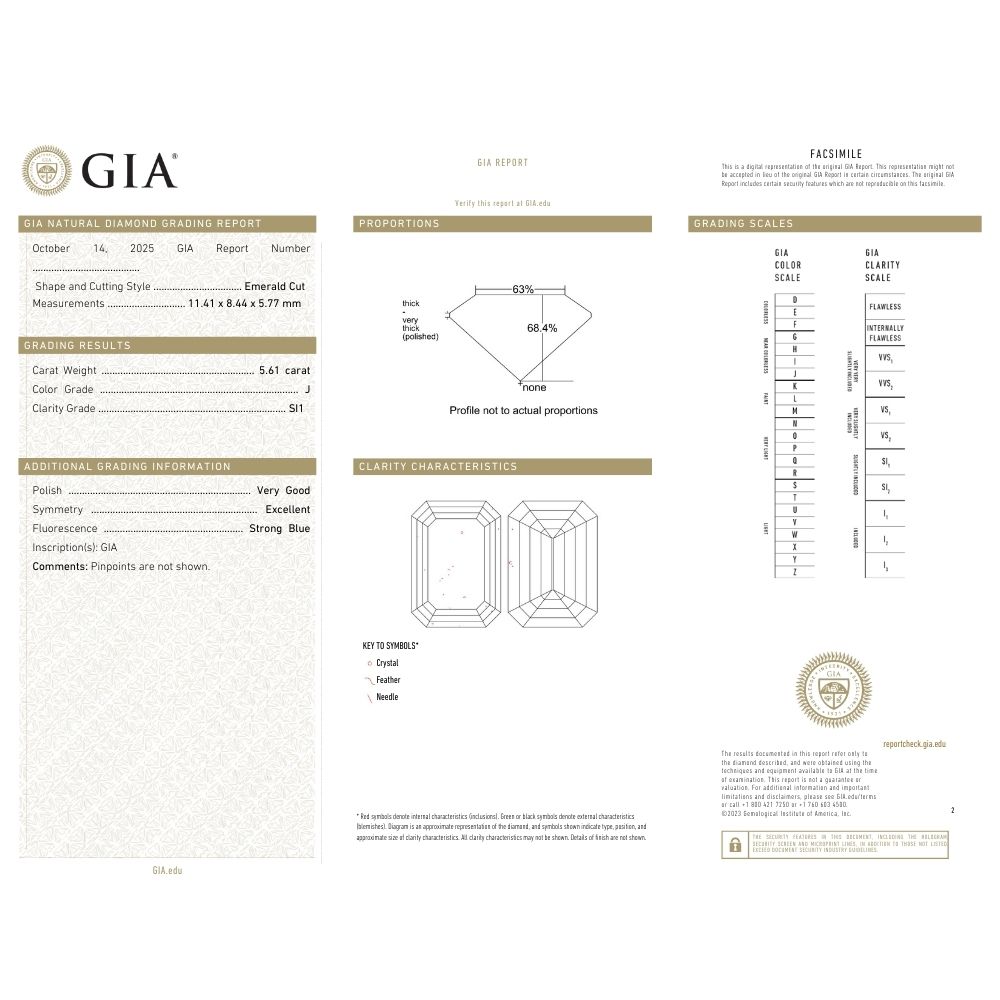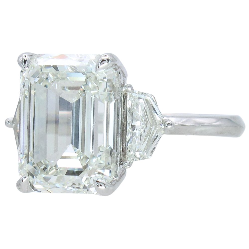 DIAMOND: 1) 5.61ct Emerald Cut Diamond GIA – certified J-Color/ SI1-Clarity (2) 0.51ctw Cadillac Diamonds