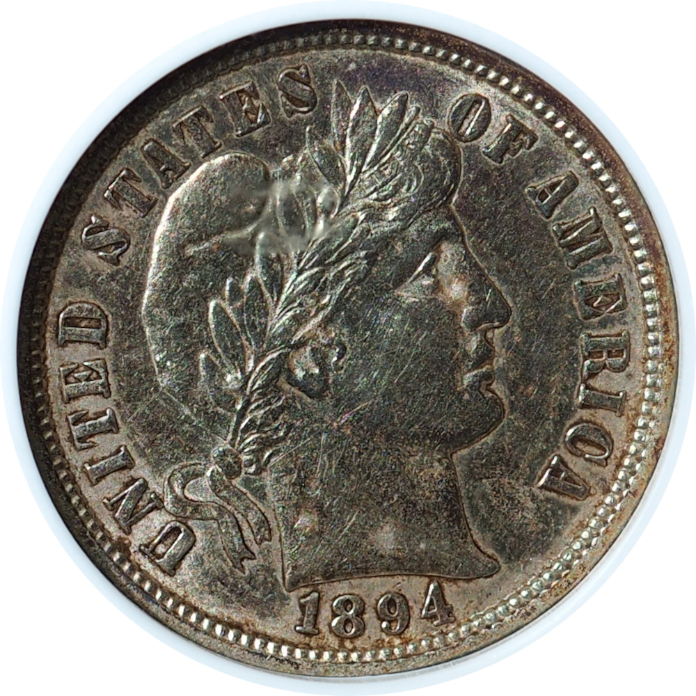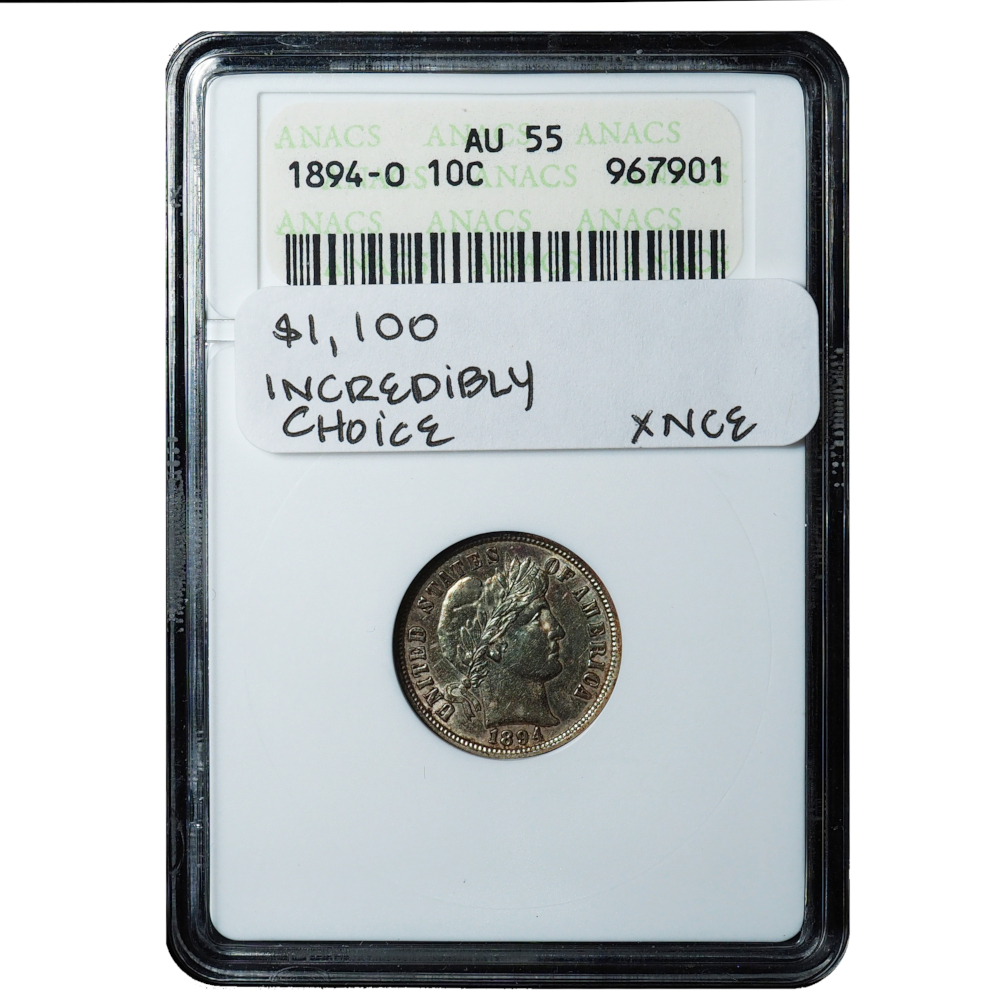 1894-O Barber Dime AU55 ANACS Soapbox – New Orleans Near-Gem