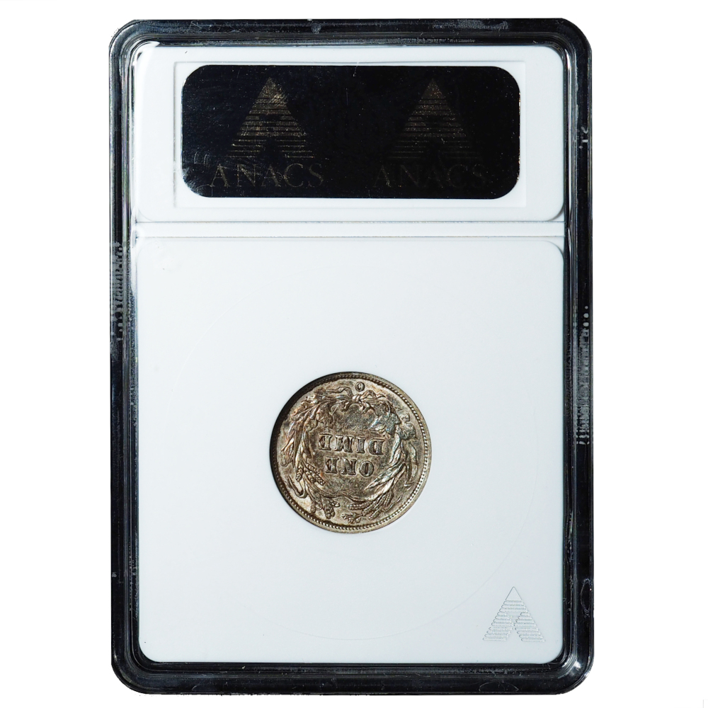 This attractive 1894-O Barber Dime, graded AU55 by ANACS, is housed in a collectible vintage ANACS “Soapbox” holder and represents a desirable New Orleans Mint issue. Barber coinage from New Orleans is known for its scarcity in higher grades, making this near-Mint State example especially appealing.