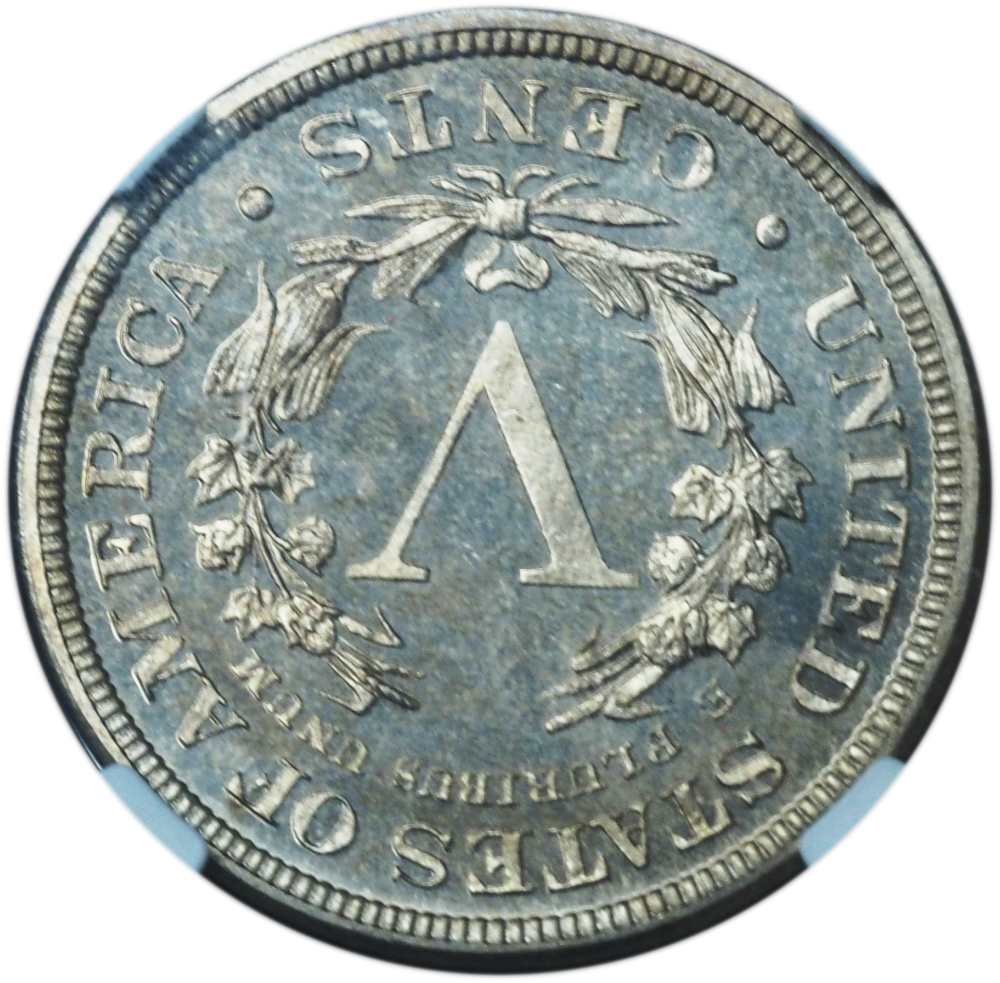 Features Charles Barber’s elegant Liberty Head design on the obverse and a bold Roman numeral “V” reverse.