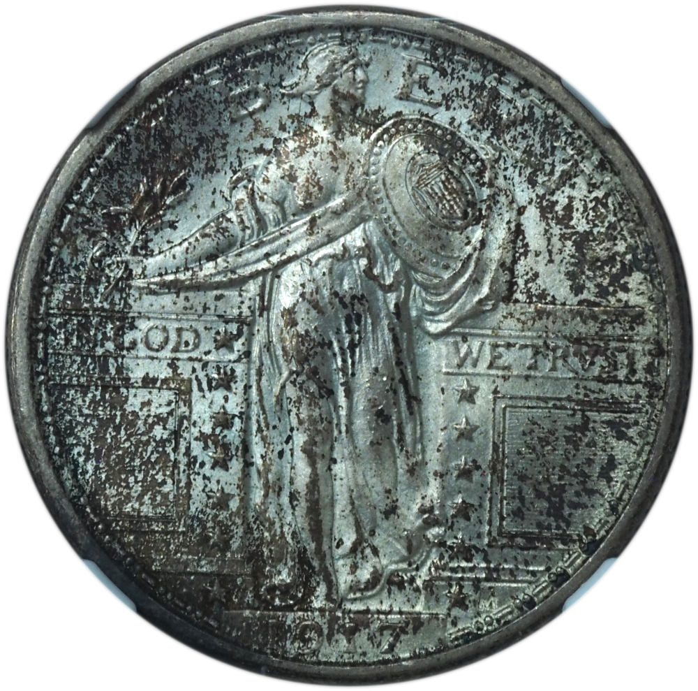 Struck in 1917, the final year of the short-lived Type 1 Standing Liberty design.