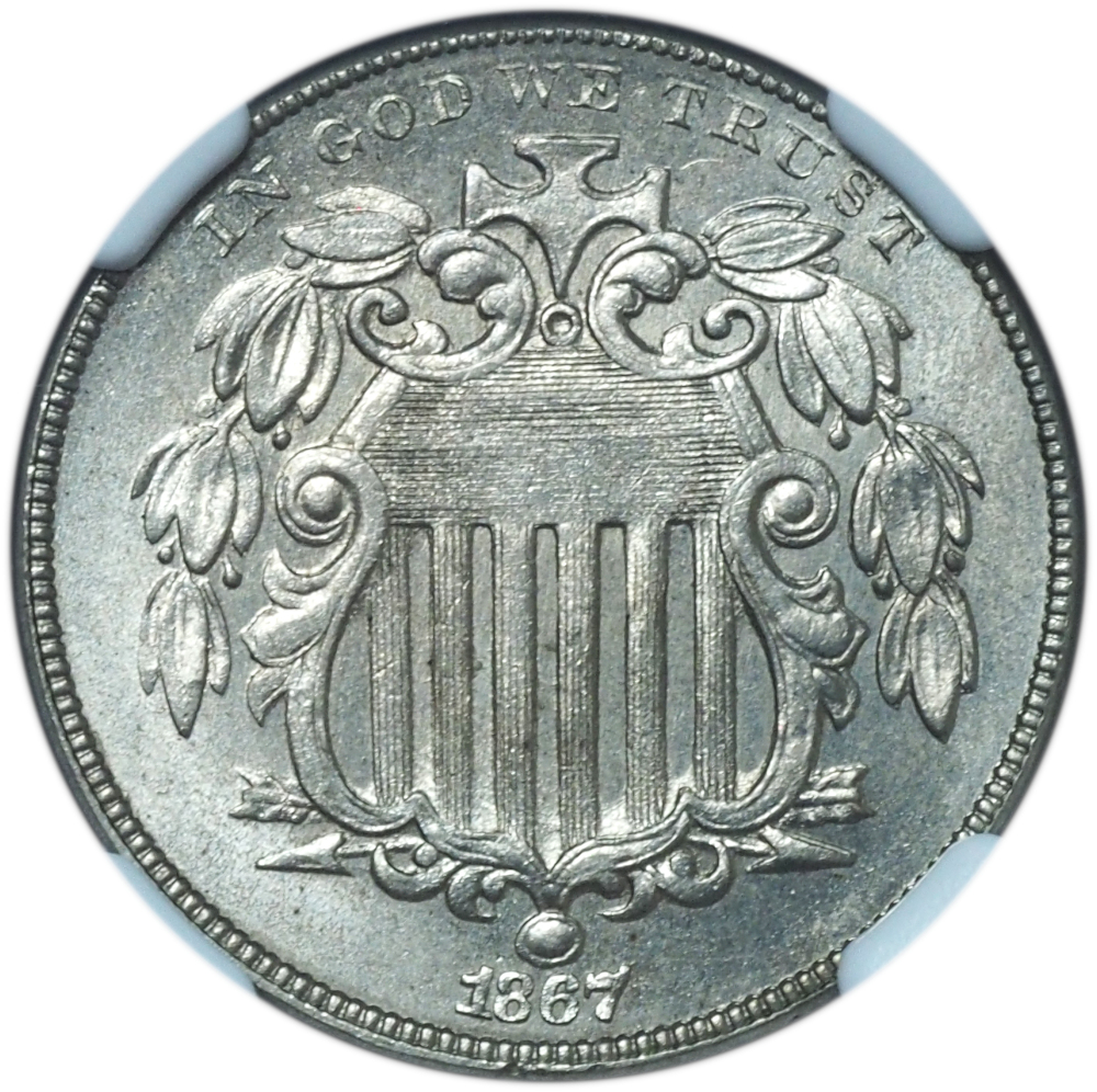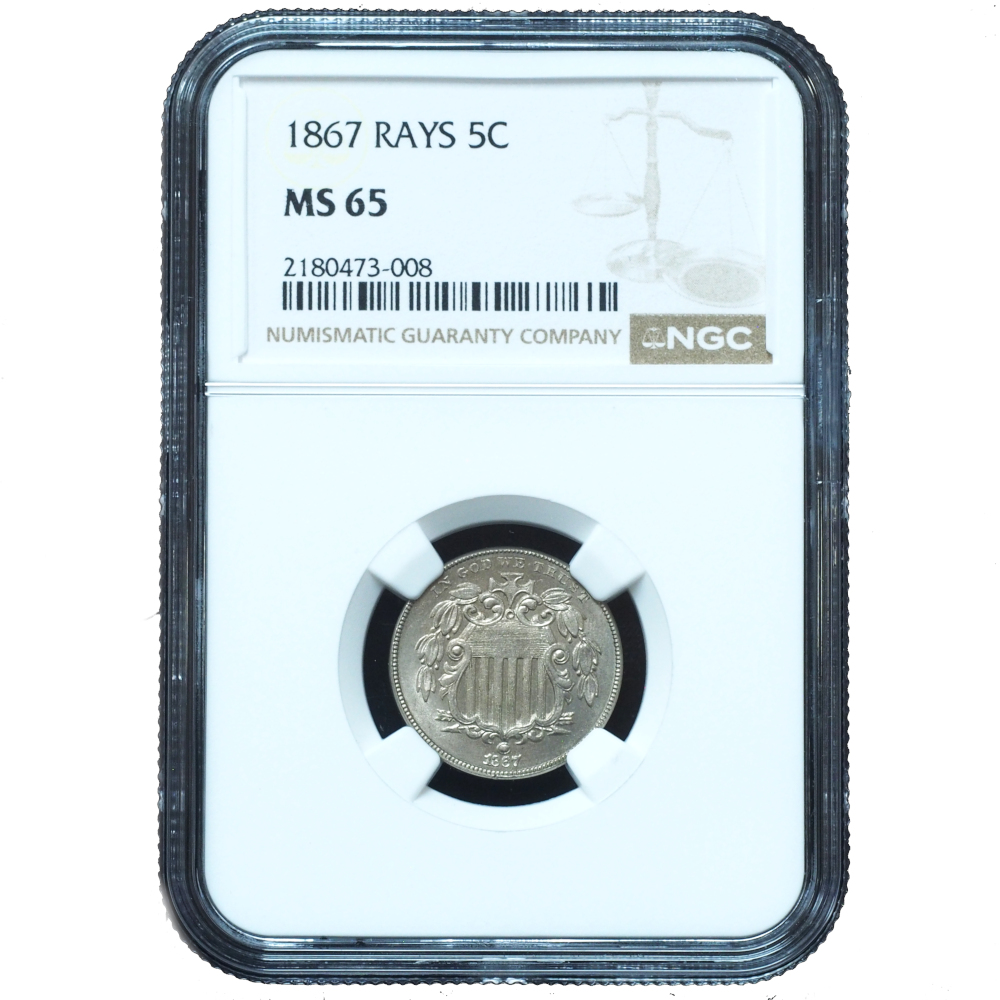 This 1867 Shield Nickel with Rays MS65 NGC is a premium gem example of an important and short-lived U.S. coin design—perfect for advanced collectors seeking rarity, history, and condition.