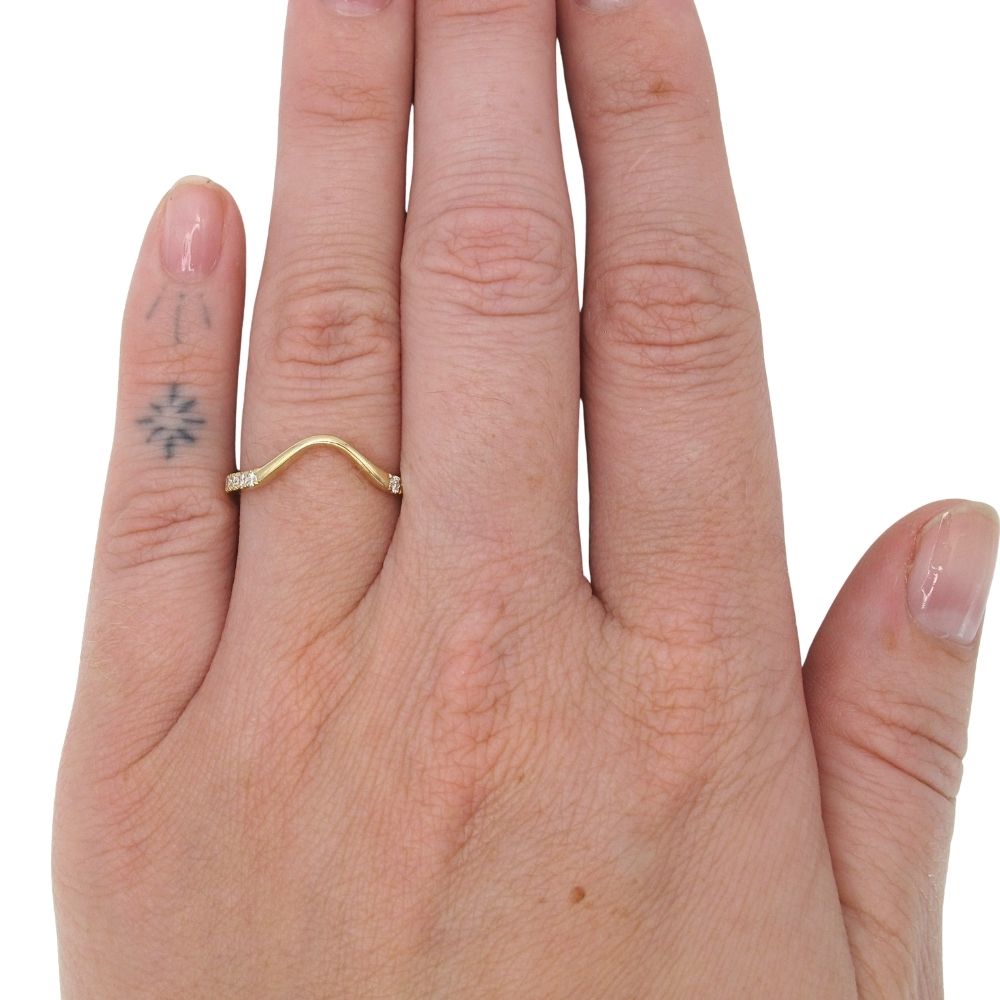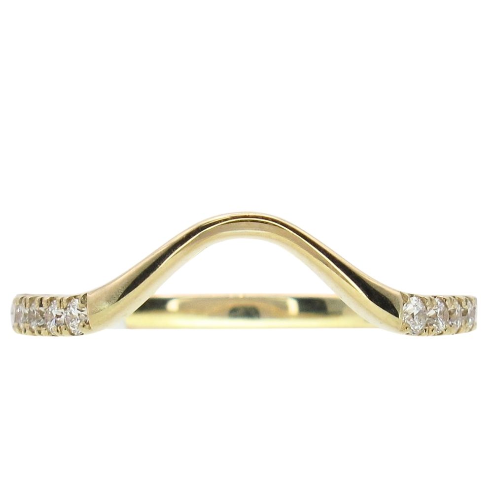 Thoughtfully designed for both beauty and functionality, this elegant curved wedding band is crafted in your choice of 14K white gold or 14K yellow gold, offering a seamless complement to engagement rings with a lower profile setting. Featuring a three-quarter pavé diamond design, this band sparkles with continuous brilliance along the sides, while the center showcases a smooth, polished gold curve that gracefully contours around your ring for a perfect, flush fit. The combination of shimmering pavé diamonds and sleek solid gold creates a striking contrast that feels both modern and timeless. Ideal for stacking or pairing with uniquely shaped engagement rings, this contoured diamond band delivers exceptional versatility, comfort, and style. Expertly crafted with attention to detail, it is the perfect choice for a wedding band, anniversary ring, or stacking essential for those seeking a tailored, sophisticated look with enduring sparkle.