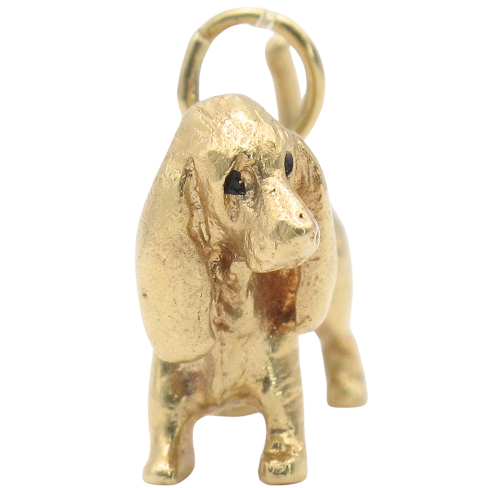 Bassett Hound Dog Charm or Pendant 14K Gold Three-Dimensional