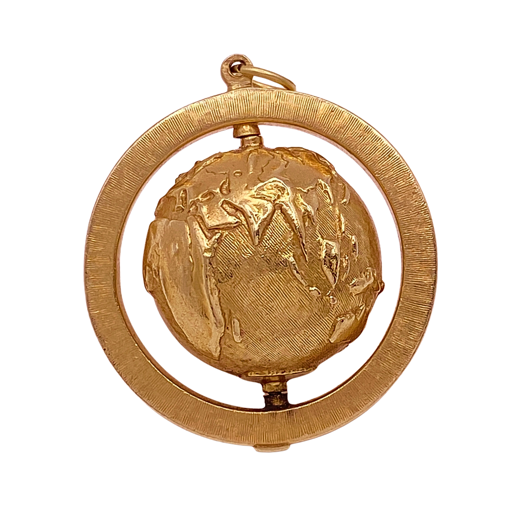 Big Vintage Spinning Globe Charm or Pendant 14K Gold Three-Dimensional