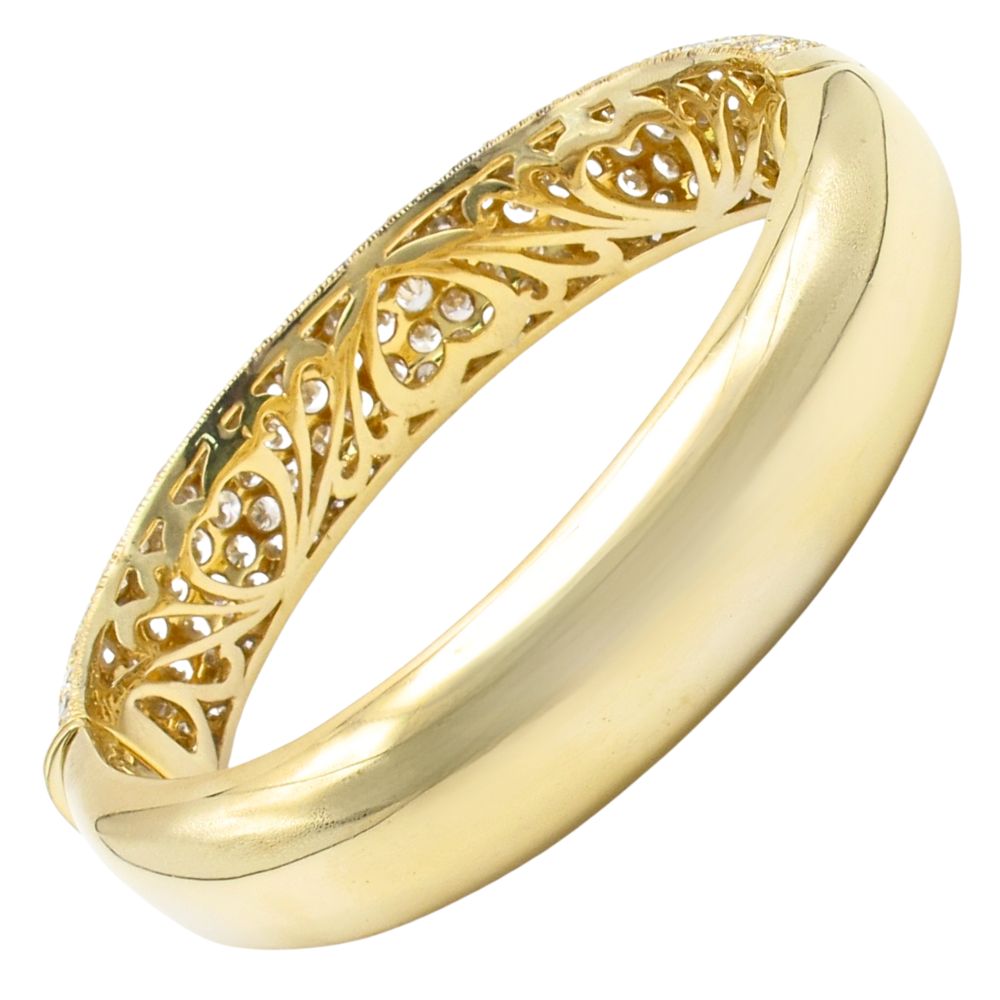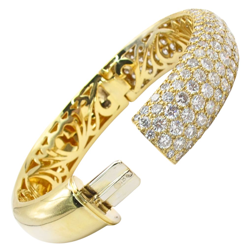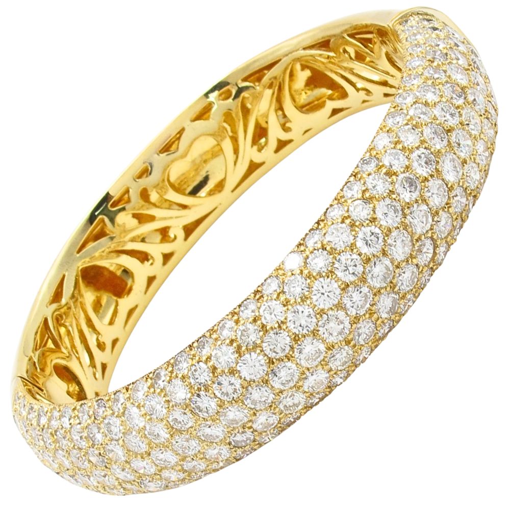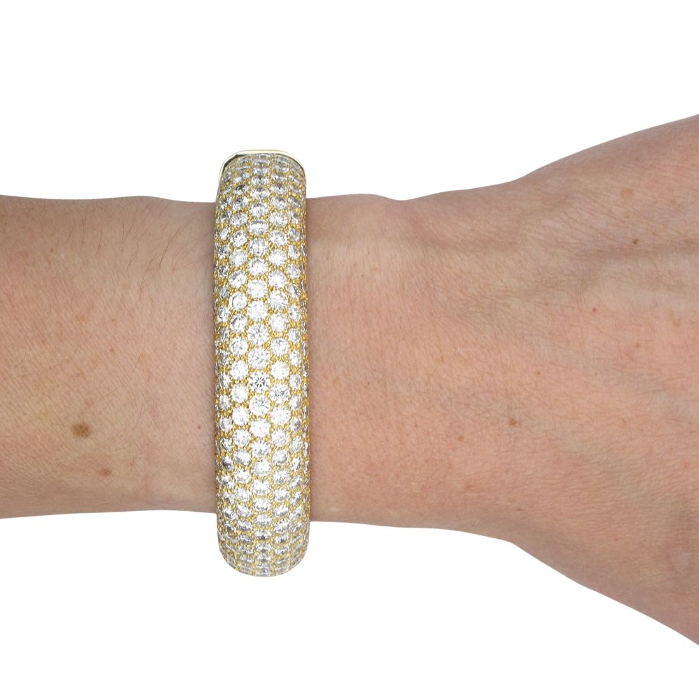 12.75ctw Pave Diamond Bombe Bangle Bracelet 18K Yellow Gold