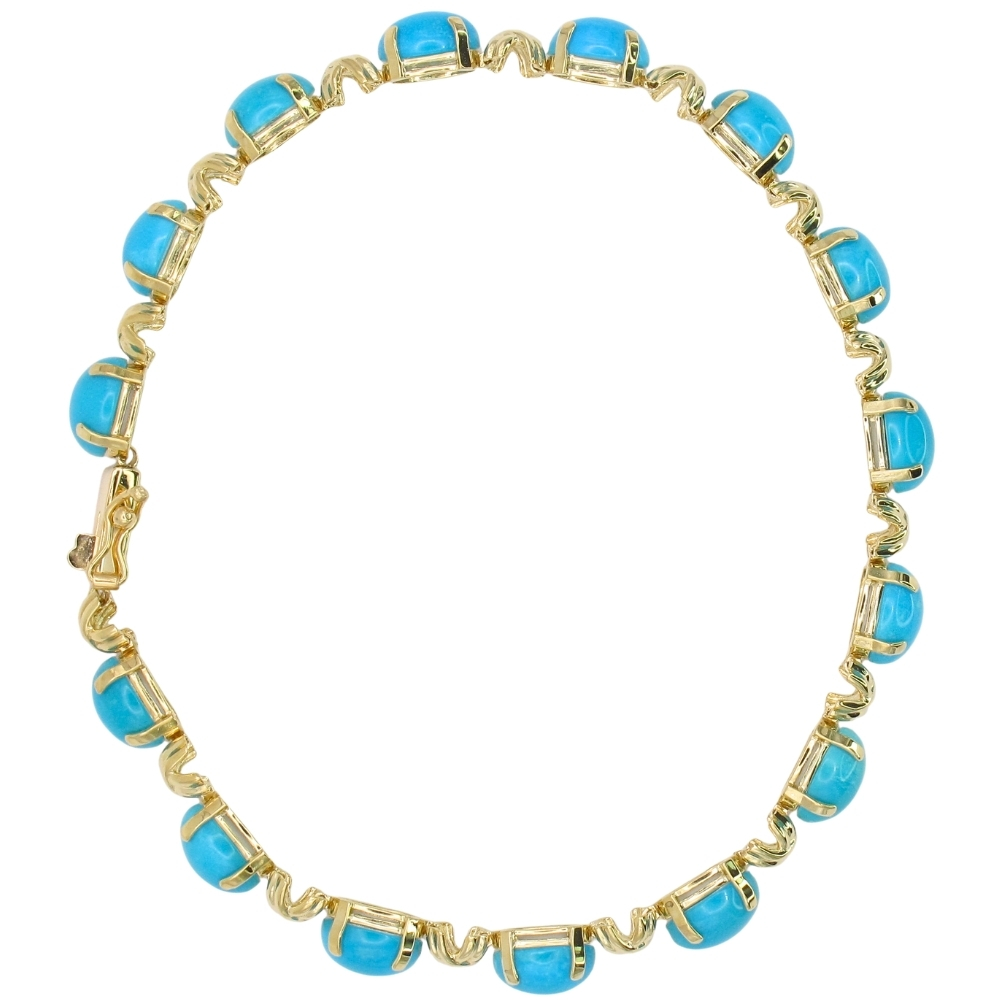 11.25ctw Cabochon Turquoise Line Bracelet 14K Gold