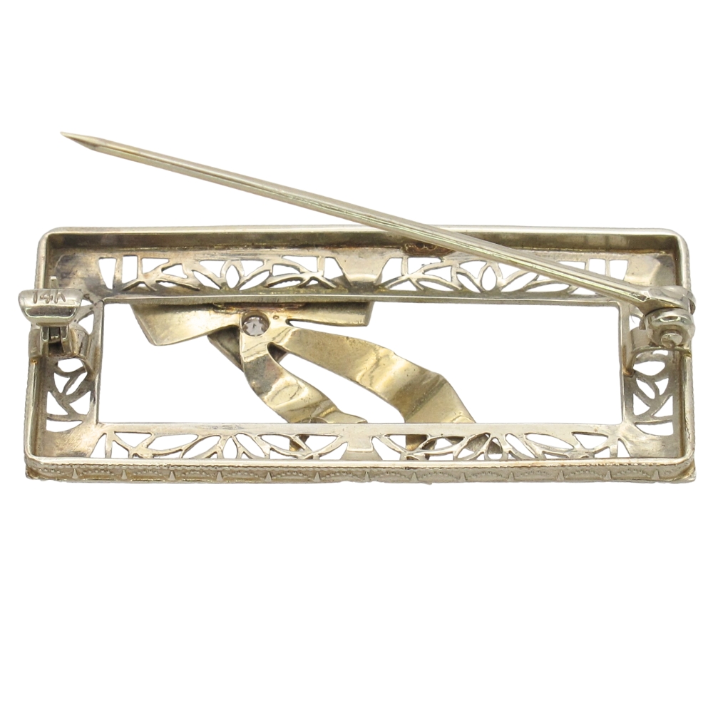 Art Deco Era Framed Bow Brooch 14K White Gold