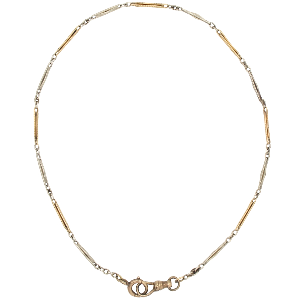 Art Deco Watch Chain 14K Two-Tone Gold 14 Inch Length