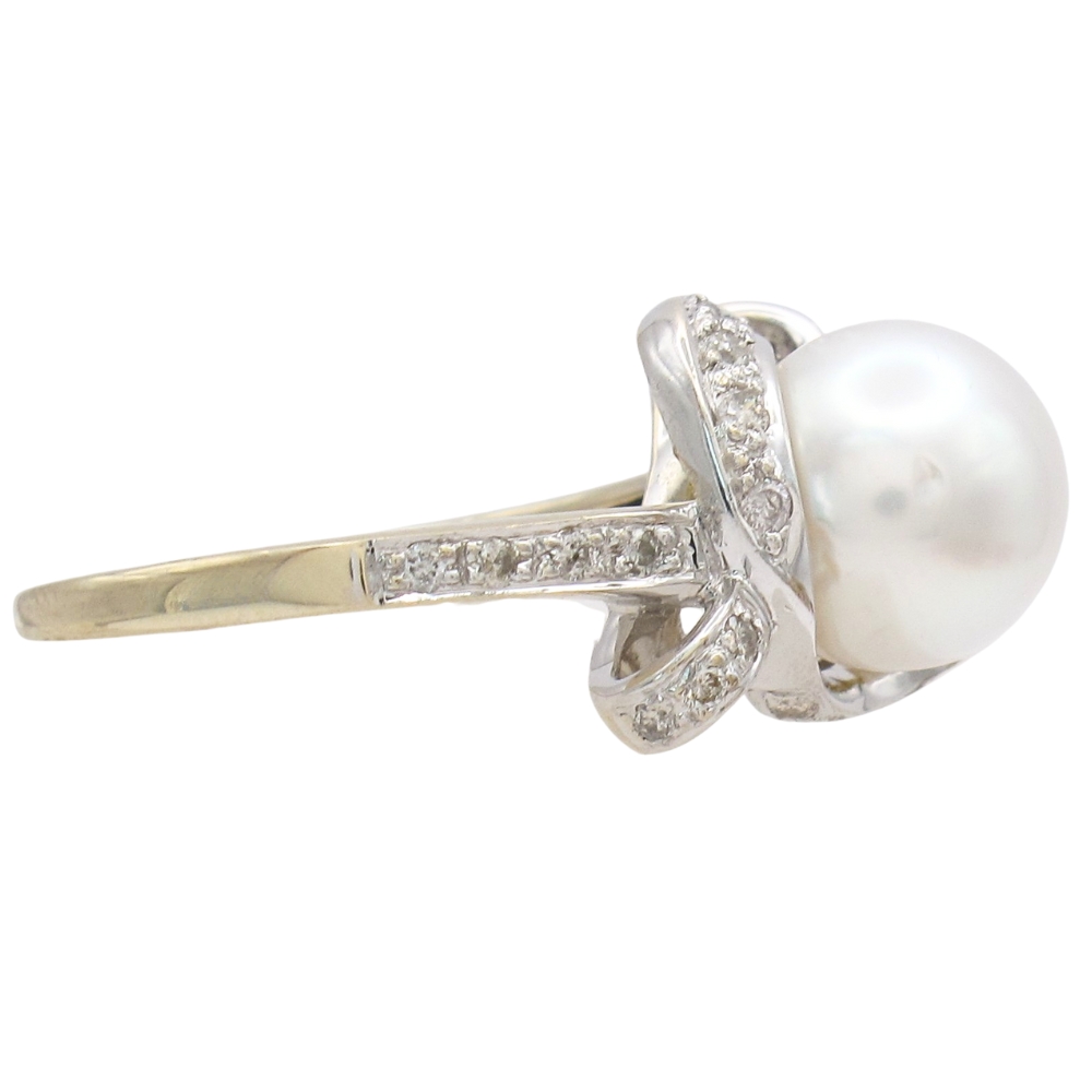 Cultured Pearl Ribbon Ring with Diamond Accents 18K White Gold