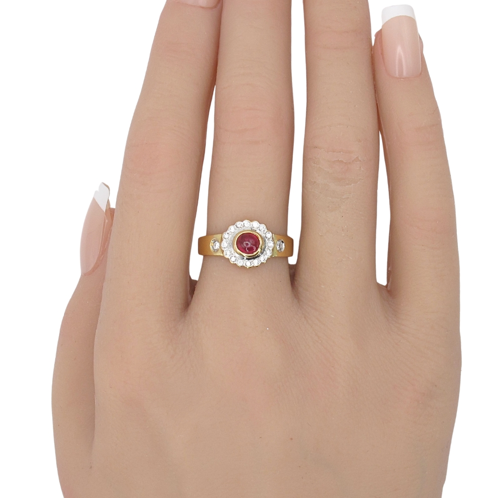 0.67ctw Cabochon Ruby Ring 14K Two-Tone Gold