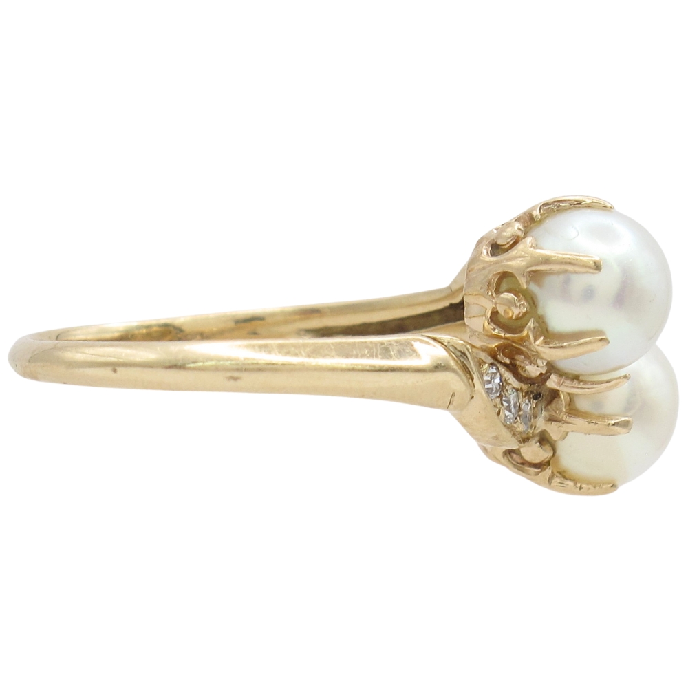 Vintage Cultured Pearl By-Pass Ring 14K Gold