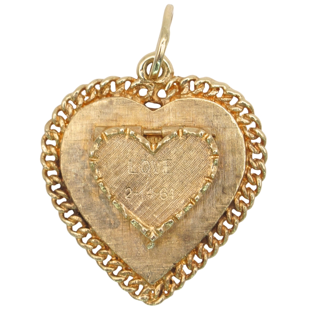 Vintage Cultured Pearl Heart Locket Charm or Pendant 14K Gold