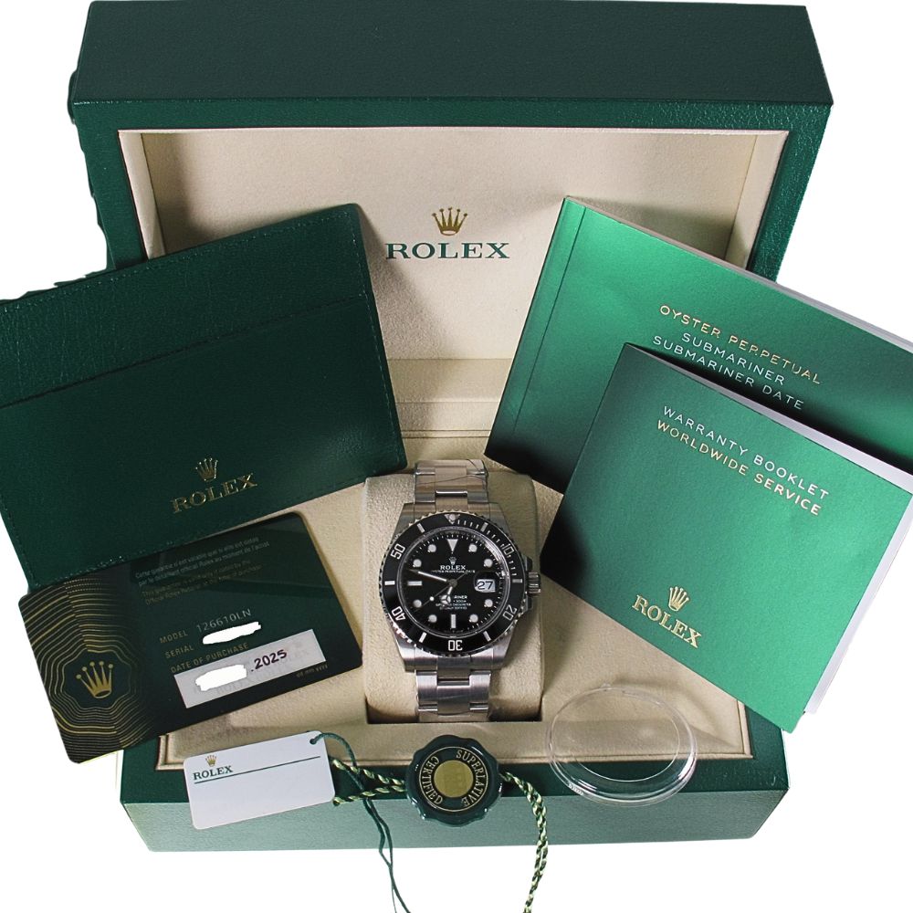 New Unworn With Factory Stickers 2025 Stainless Steel Rolex Submariner 41MM Watch Black Index Dial With Black Ceramic Bezel Model 126610. This is a New Never Worn Or Sized With Factory Stickers Rolex Stainless Steel Submariner Black Index Dial With Black Ceramic Bezel and Oyster band. Comes With Original Rolex Certificate of Authenticity, original Rolex Box, All booklets, Both Hang Tags, Bezel Protector.All Rolex watches sold by Arnold Jewelers have been fully serviced including factory finish.We offer a 2 year warranty on this watch, and guarantee it with our own official certification. We sell only the finest pre-owned Rolex’s and this watch is no exception, it is in very good condition.