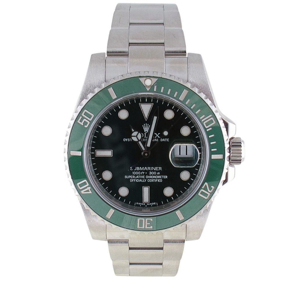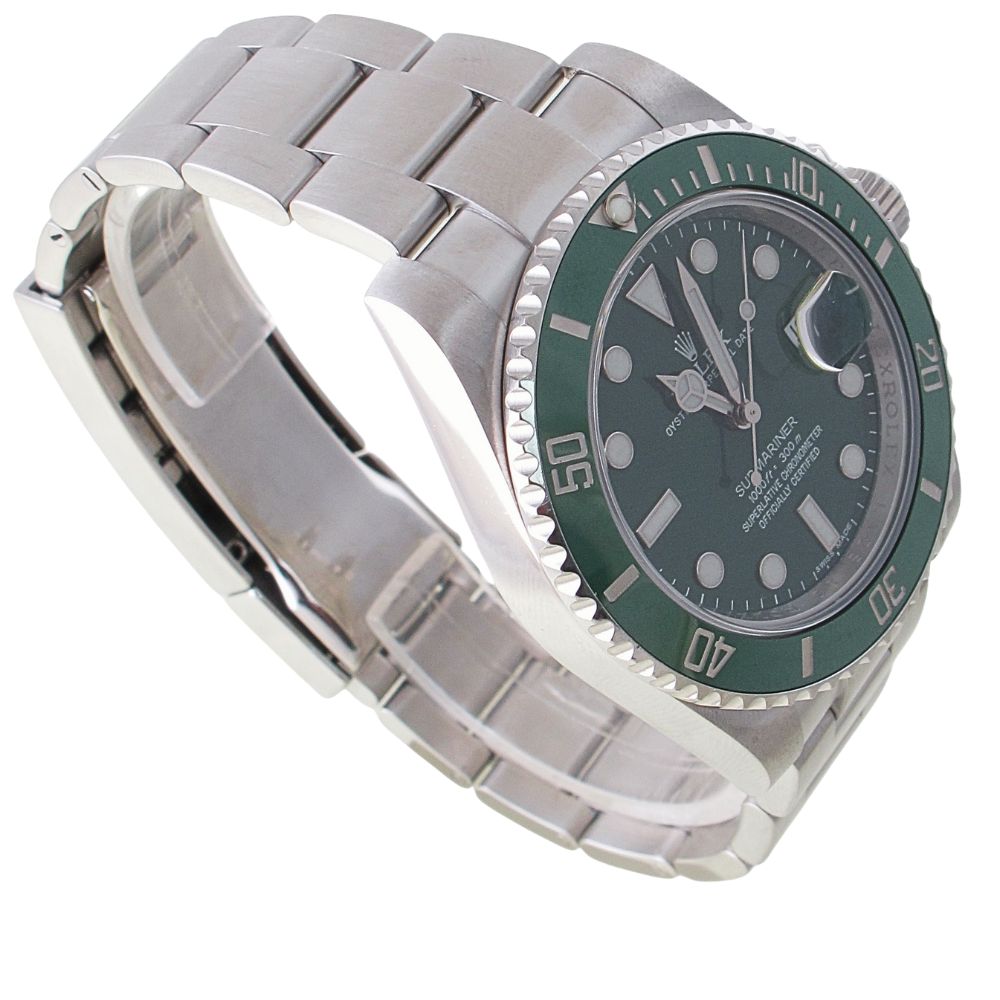 Pre-Owned 2011 Rolex Stainless Steel 40MM Submariner Watch Gren Dial With Green Ceramic Bezel (The Hulk)And Oyster Band Model# 116610LV