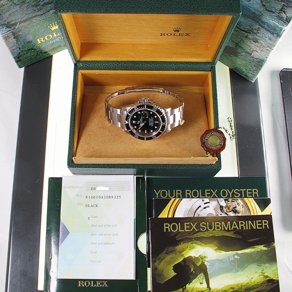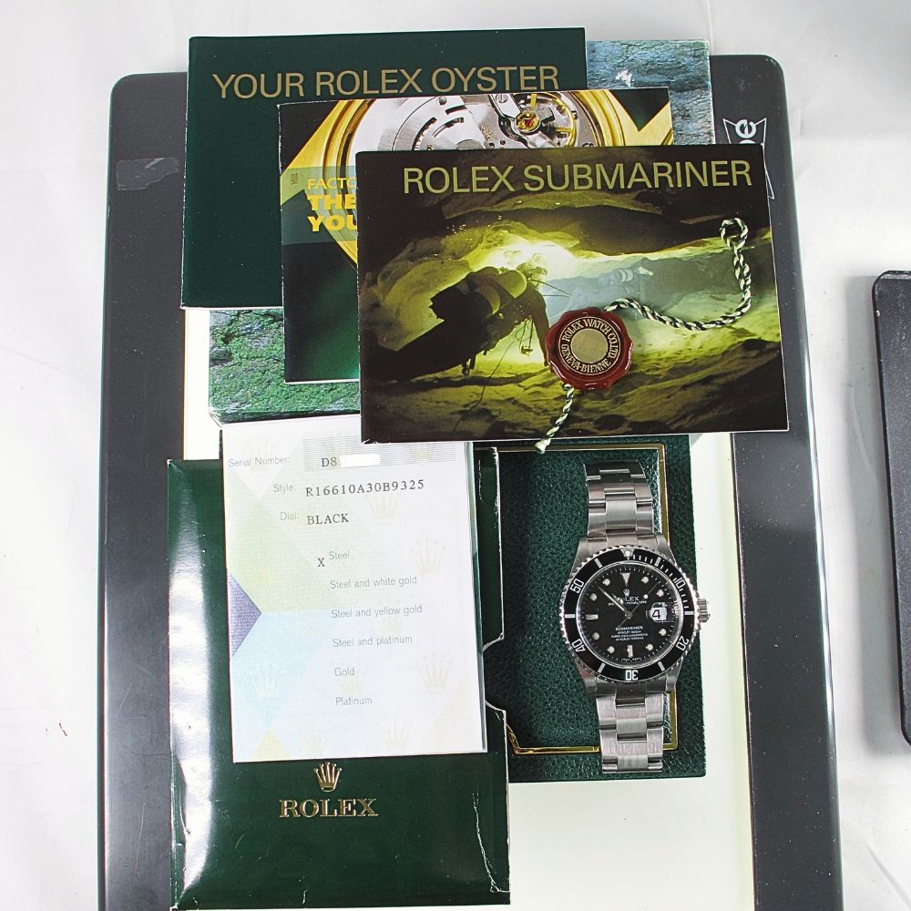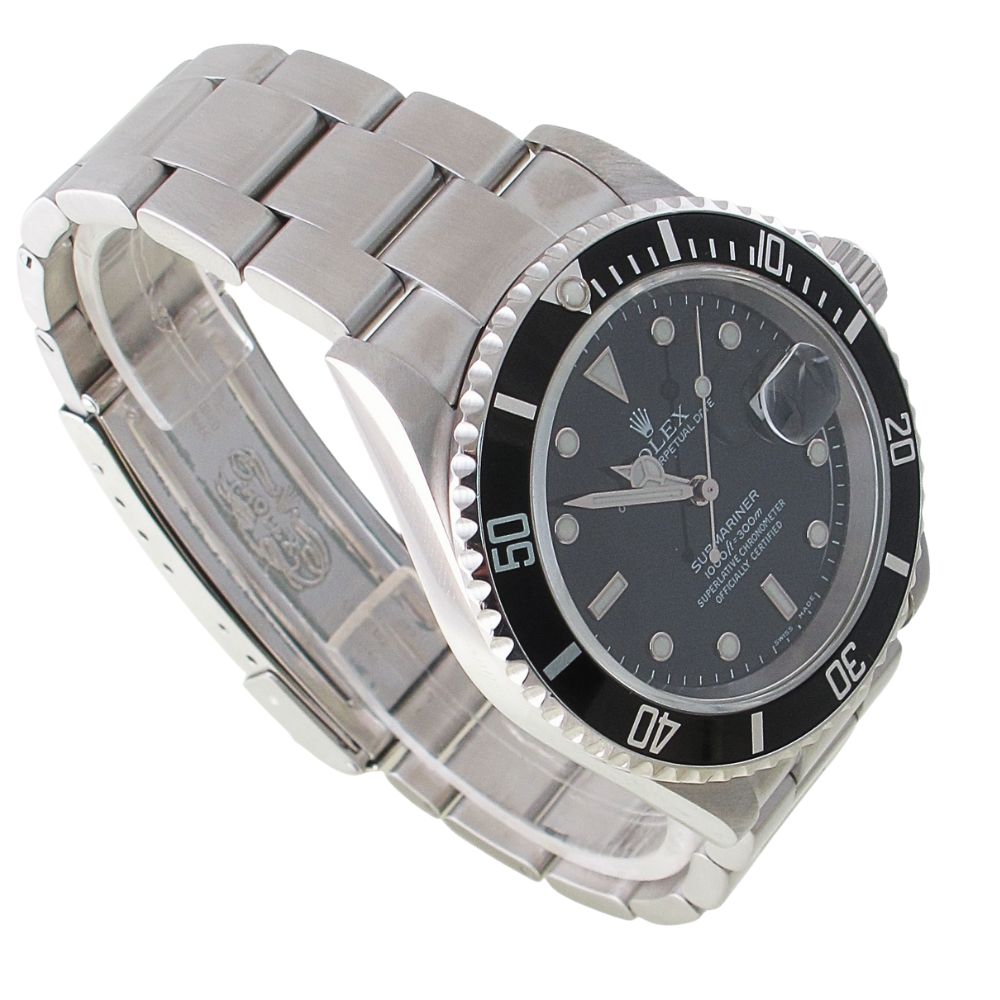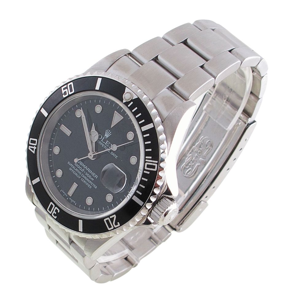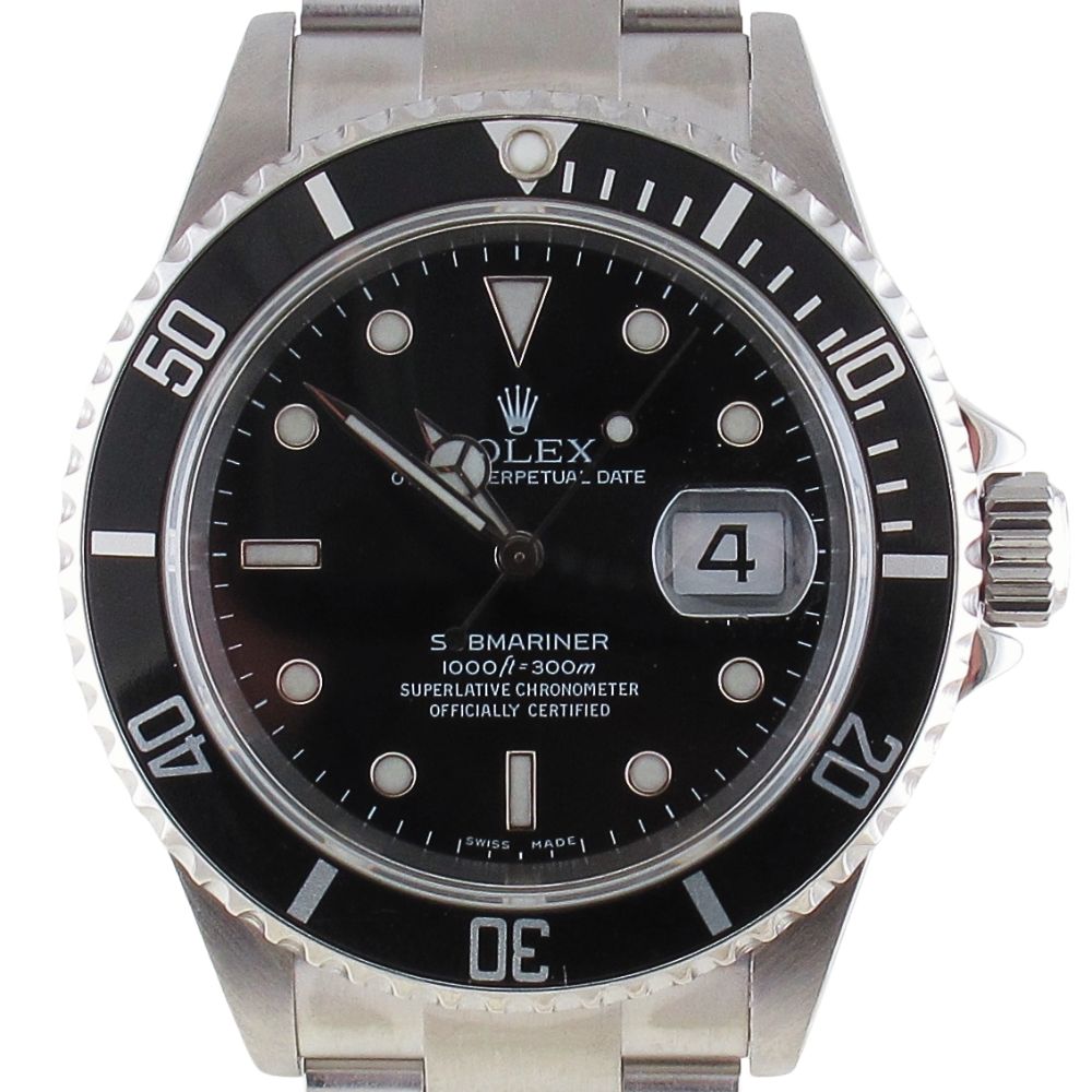 2005 Stainless Steel Rolex Submariner Model 16610. This is a pre-owned Rolex Stainless Steel Submariner with Black Bezel and Black Index Dial with an oyster bracelet. Will Come with Original Rolex Warranty Paper Work, Original Rolex Box, And Booklets, Tag. All Rolex watches sold by Arnold Jewelers have been fully serviced including factory finish. We offer a 2-year warranty on our watches and guarantee them with our own official certification. We sell only the finest pre-owned Rolex’s and this watch is no exception, it is in like-new condition