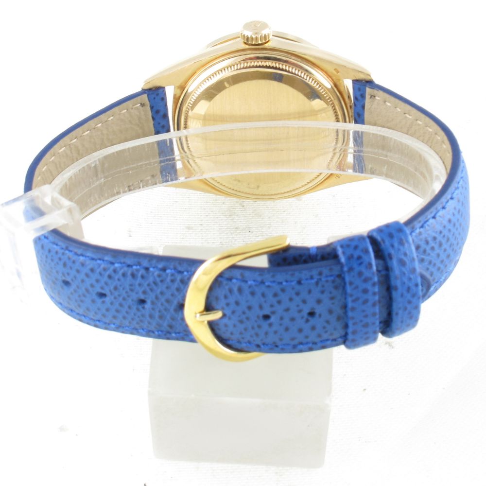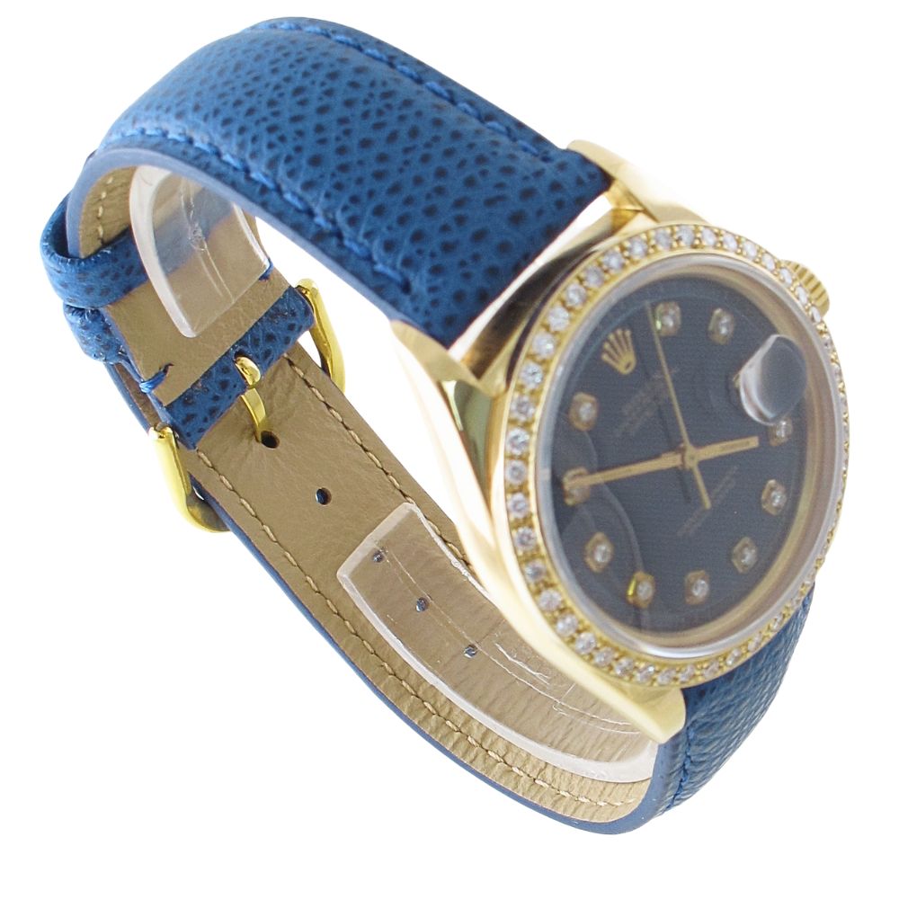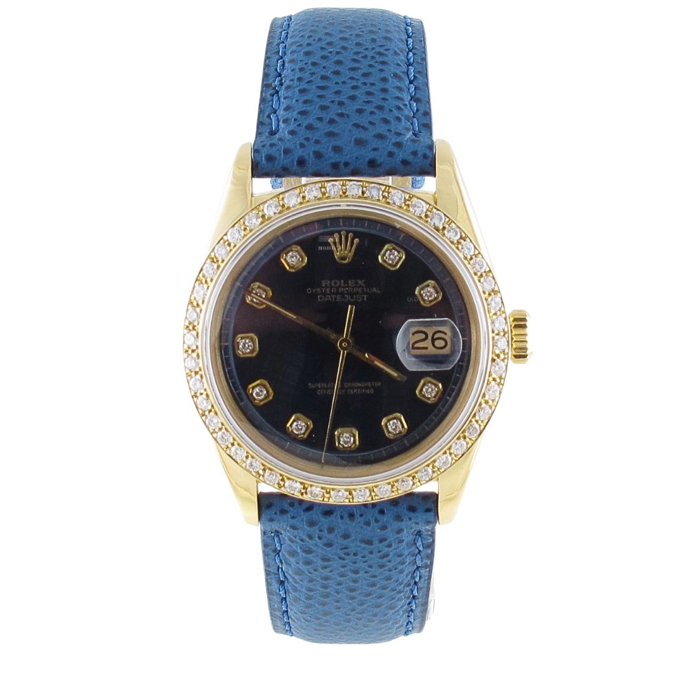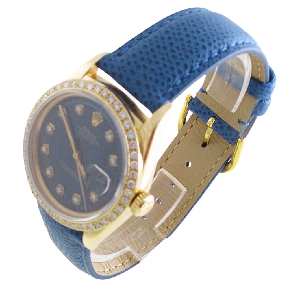 Pre-Owned Vintage 1970 18kt Yellow Gold Rolex Datejust 36MM Watch Blue Diamond Dial With Diamond Bezel Leather Band Model# 1601