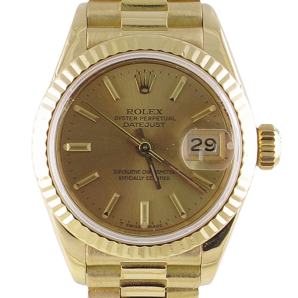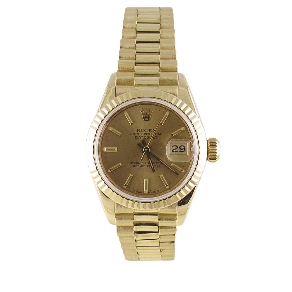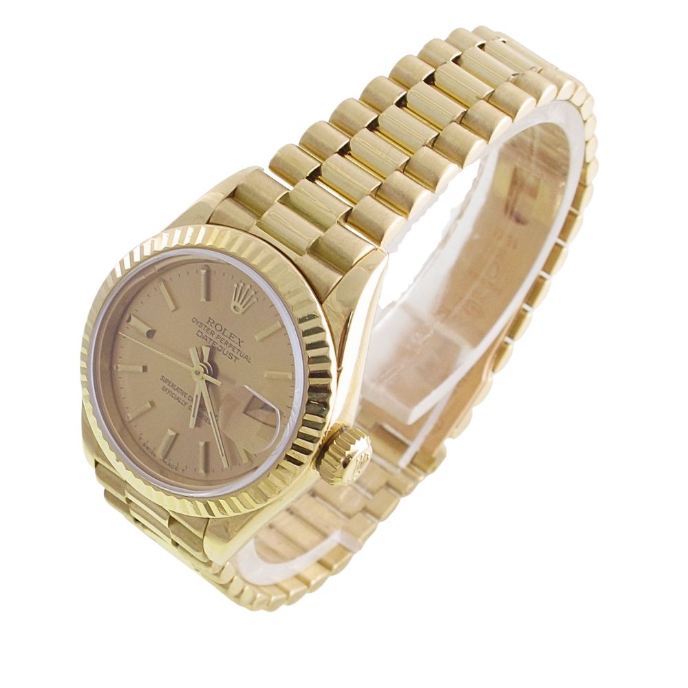 Pre-Owned Ladies 26MM Rolex Presidential (1986) 18kt Yellow Gold Model 69178 Champagne Stick Dial And Yellow Gold Fluted Bezel Model#69178