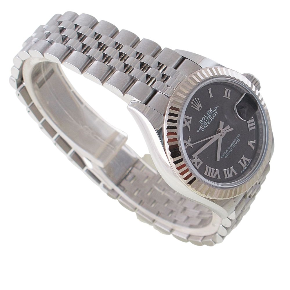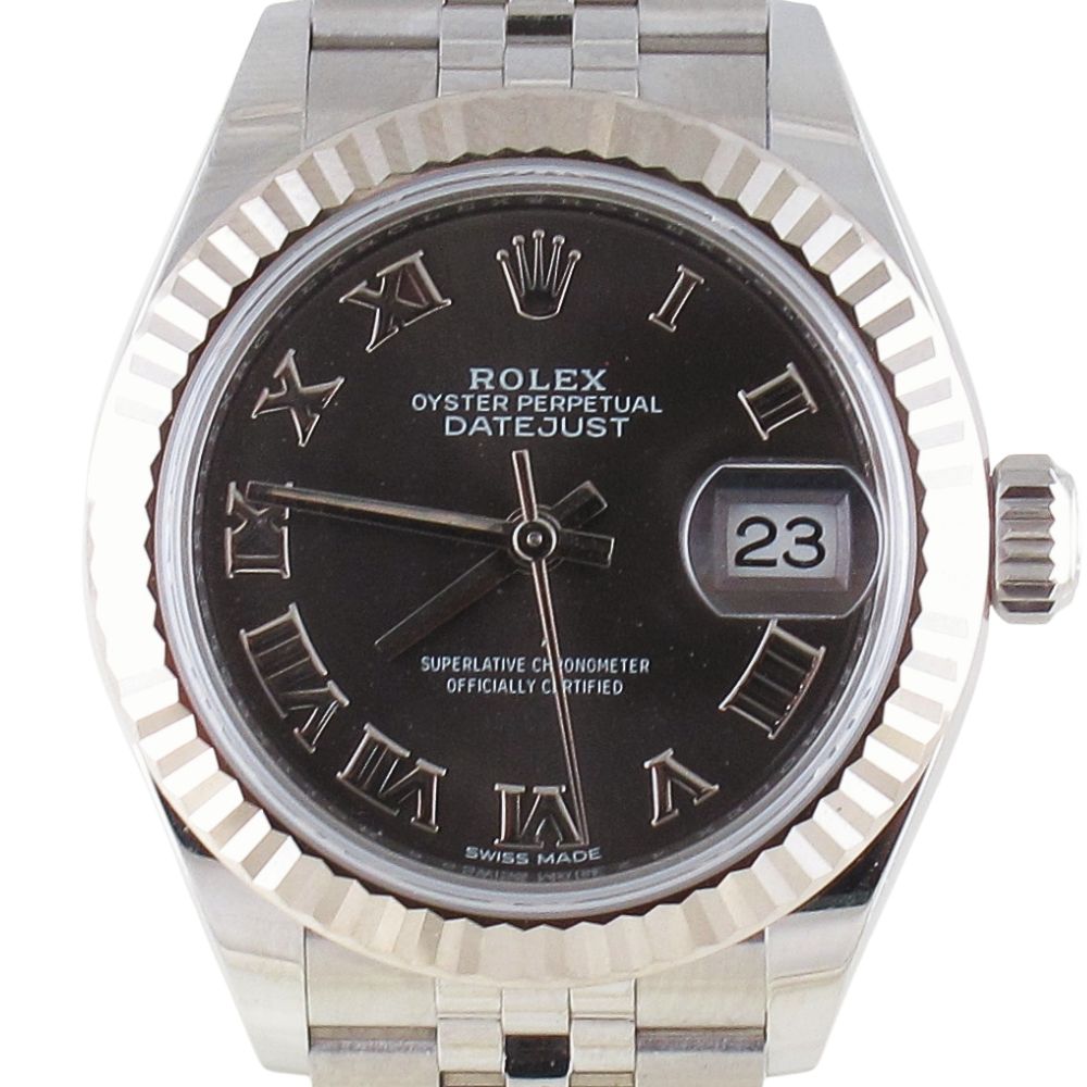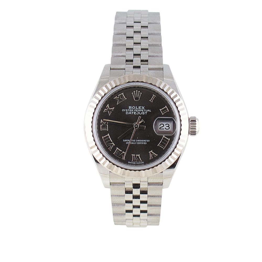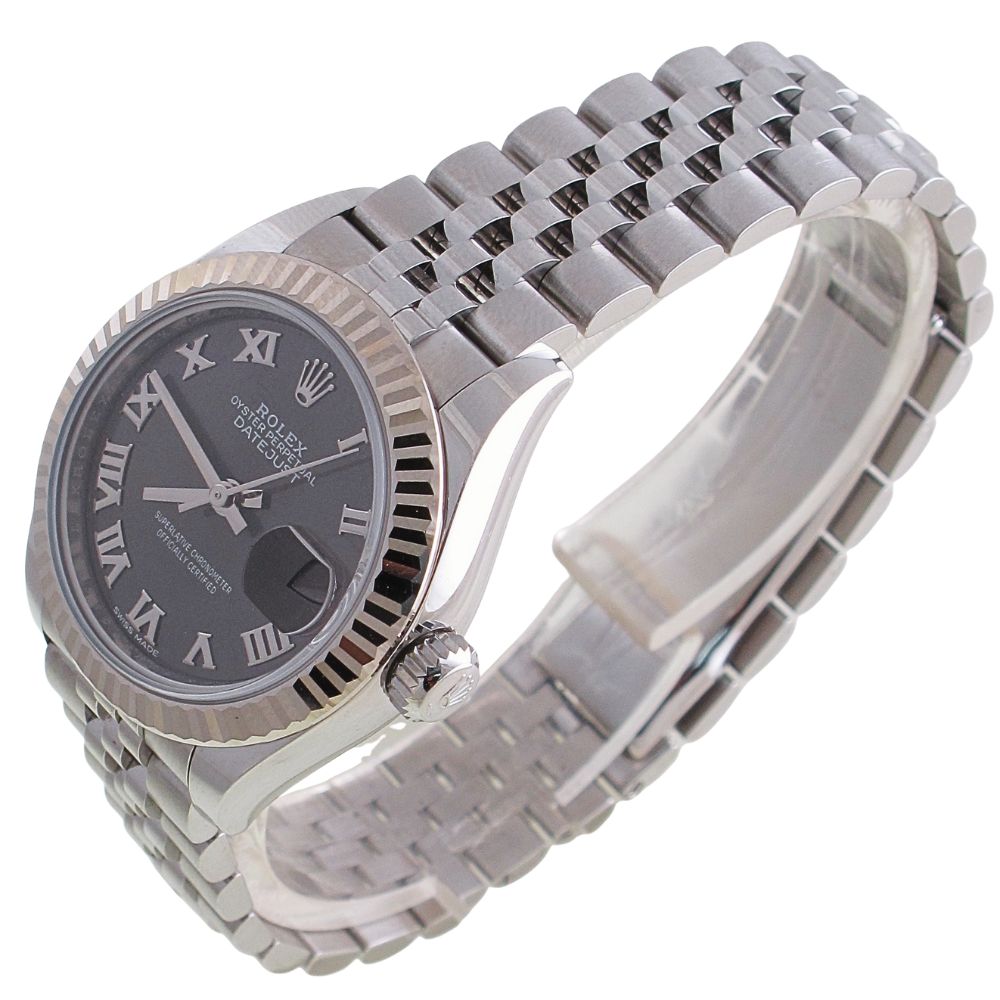 Pre-Owned Ladies Rolex 28MM Datejust (2018) Stainless Steel Grey Roman Dial With Hidden Clasp Model 279174