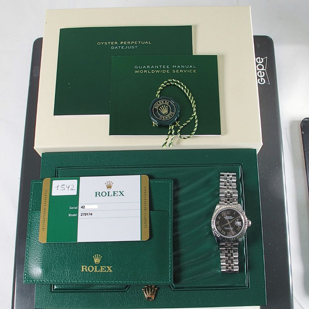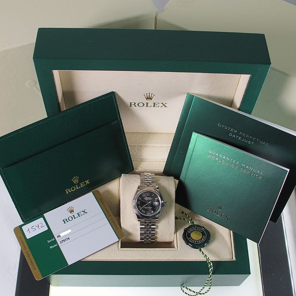 This is a Pre-Owned Rolex 28MM Ladies Stainless Steel Datejust Watch with Grey Roman Dial and fluted bezel, Stainless Steel Jubilee Band With Hidden Clasp. Comes with Original Rolex Certificate Of Authenticity Card , Original Rolex Box, Booklets, And Hang Tag. We offer a 2-year full-service warranty on our watches and guarantee them w/ our own official certification. We sell only the finest pre-owned Rolex’s and this watch is no exception, it is in Excellent condition.